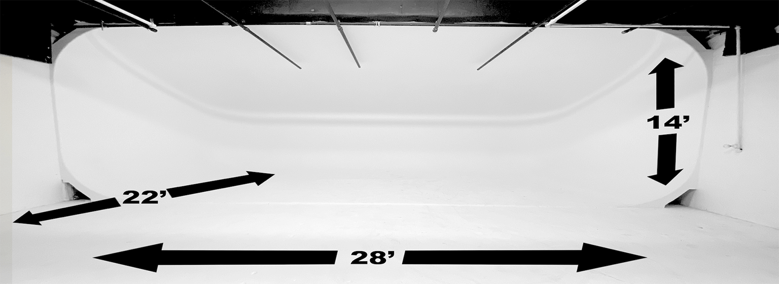 - Cyclorama Studio Dimensions: 30′ 10″ X 34′ 15″